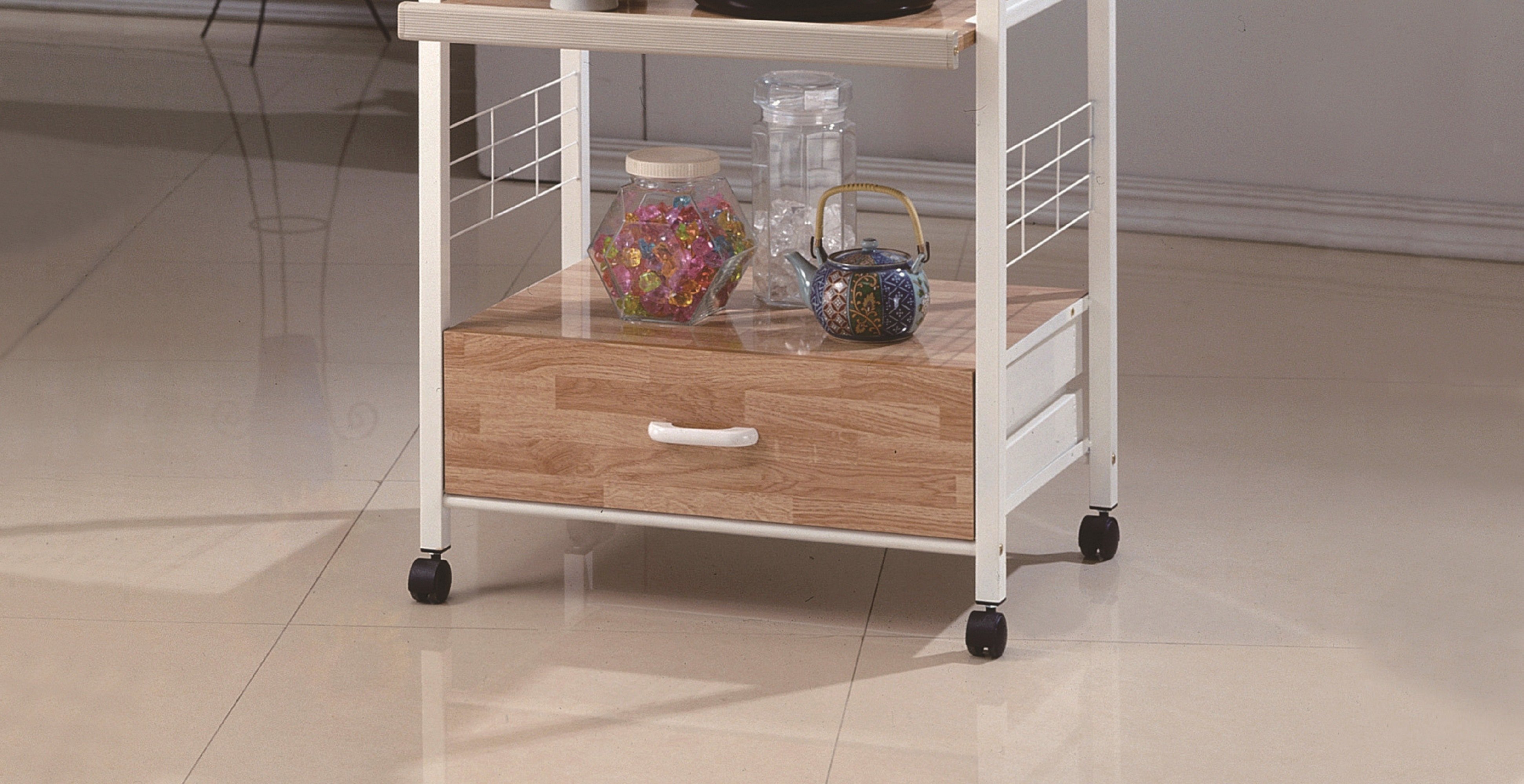 1pc White Kitchen Cart Open Shelves Metal Frame