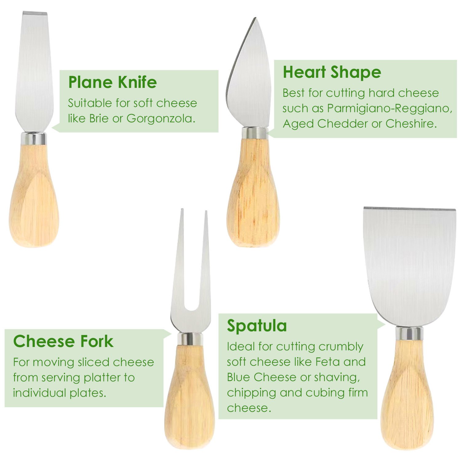 *Premium Bamboo Board*:The cheese board and knife set are made of premium bamboo; thick and sturdy for durability and long-time preservation. And the surface is smooth enough to make it easy for cutting assorted cheeses; fruits and others.