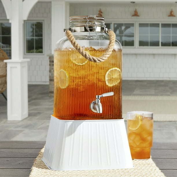 Keep everyone hydrated for your next summer gathering with the Better Homes & Gardens 2-Gallon Glass Beverage Dispenser. Outfitted with a tight-seal wooden lid and rope handle, it’s easy to bring to the kitchen to refill and then prop back onto the stand when drinks are running low. Fill this dispenser up with up to two gallons of lemonade, tea, punch, infused water, or any beverage that the party guests are looking forward to.