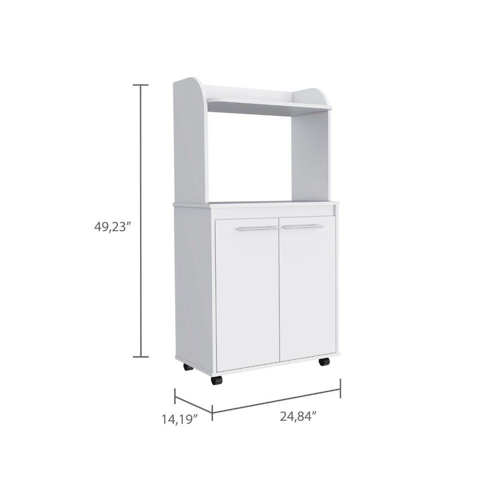 Set includesOne (1) kitchen cartDimensions49.23 inches high x 24.84 inches wide x 14.19 inches deepFinish ColorWhiteMaterialsManufactured woodNumber of shelves4Number of doors2
