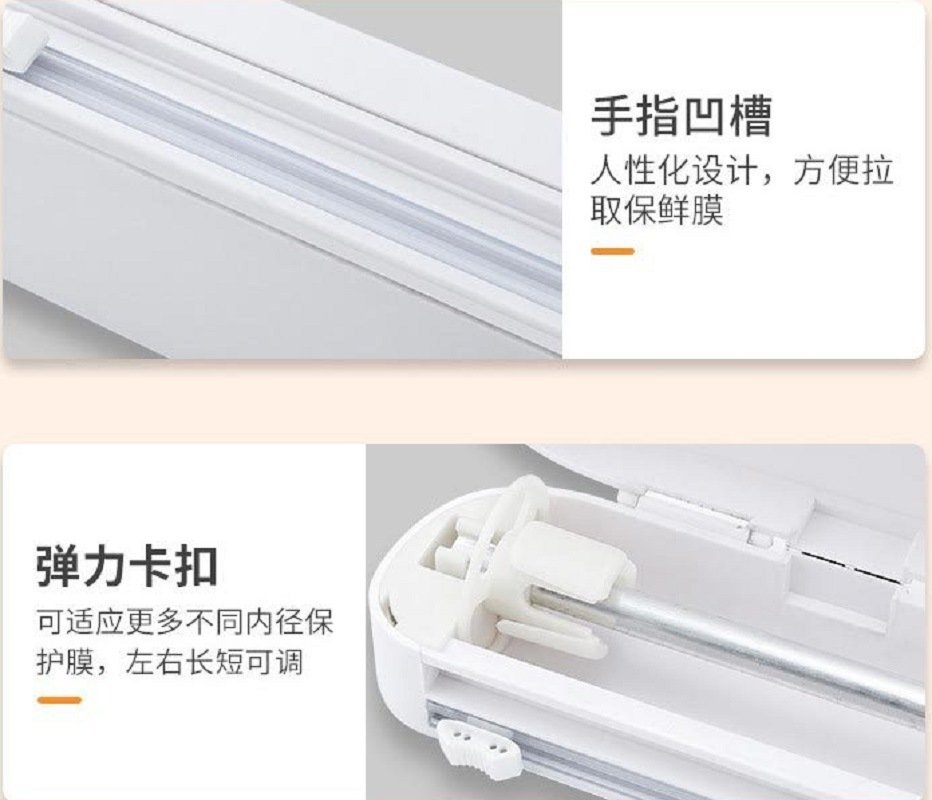 5.Adjustable bracket can be used for different sizes of plastic wrap(less than 30cm) Cutting plastic wrap is very simple and neat