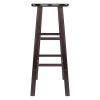 Spruce up your kitchen; breakfast nook; or den with this Winsome Wood Element Bar Stool Set. Finished in a polished espresso finish; these stools feature a simplicity of design blending seamlessly with any decor from modern to traditional. Crafted from study solid wood these bar stools are designed to help you coordinate with a wide variety of furnishings. The square legs and round seat have a sturdy built offering a supportive foundation and hold a static weight of 220lbs. Featuring 8 crossbars; high and low on all four sides; for stability and strength while also serving as convenient footrests; making this stool not only functional but also comfortable. Ideal for extra seating; accommodating guests at gatherings and ideal for everyday use. These 13.58'W x 13.58'D can easily be tucked away when not in use. Like most Winsome stools; the Element collection is available in multiple finishes and like most Winsome stools are available in both bar and counter height. Conveniently packed and shipped in one box; that includes the hardware necessary for assembling. Replacement part request can be submitted directly to the manufacturer within 60 days from date of purchase.