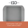 The 9 x 13, 10 x 15 and 11 x 17 cookie sheets feature nonstick inside and out to deliver great food release and make cleanup quick