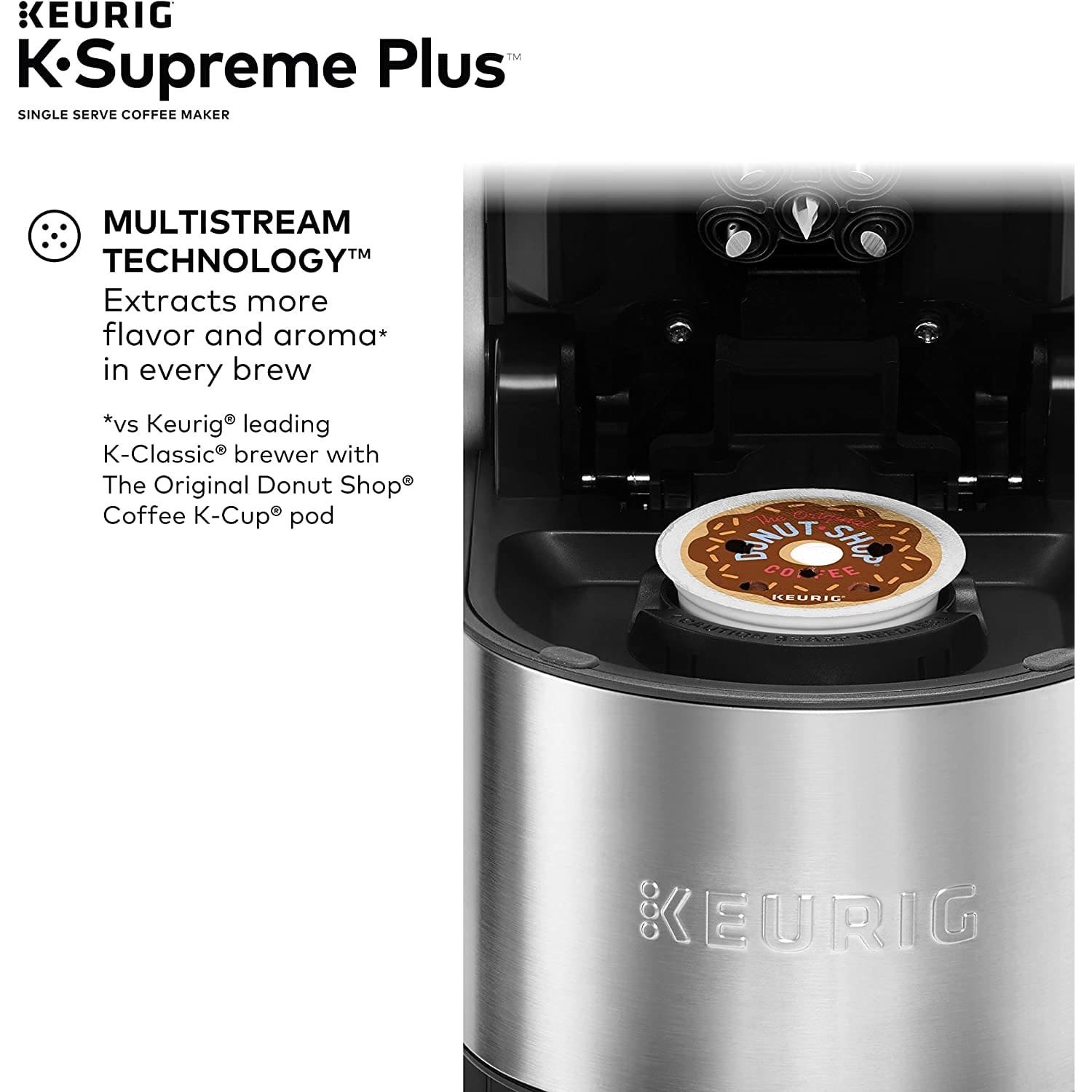 • MULTISTREAM TECHNOLOGY: Extracts more flavor and aroma in every brew. vs. Keurig leading K-Classic brewer with The Original Donut Shop Coffee K-Cup Pod