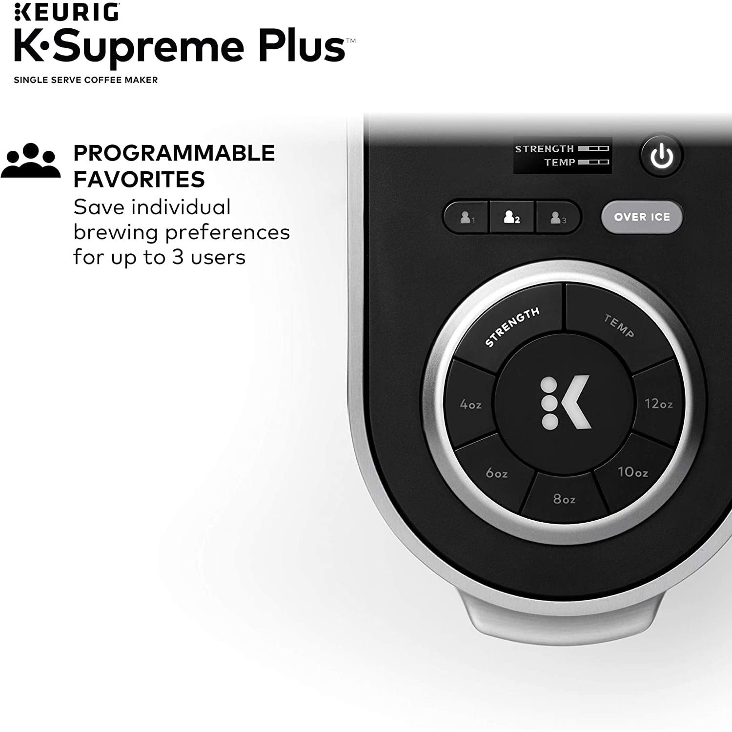 The K-Supreme Plus brewer brings customization to a whole new level; making it easier than ever to enjoy your perfect cup every time. Choose from 3 strength and 3 temperature settings; so you can have a stronger; hotter cup; or brew hot over ice for a refreshing iced coffee. This coffee maker also features programmable favorites; so up to 3 users can save their own individual brewing preferences.