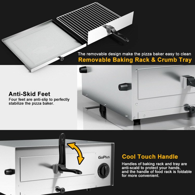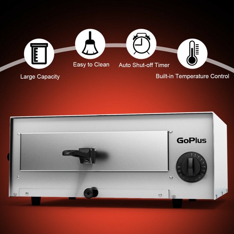 3.Auto Shut-off Timer: You can set different baking times according to different foods. Baking time can be set between 8-12 minutes based on crust size, topping and personal set. The timer will shut off after the set time.
