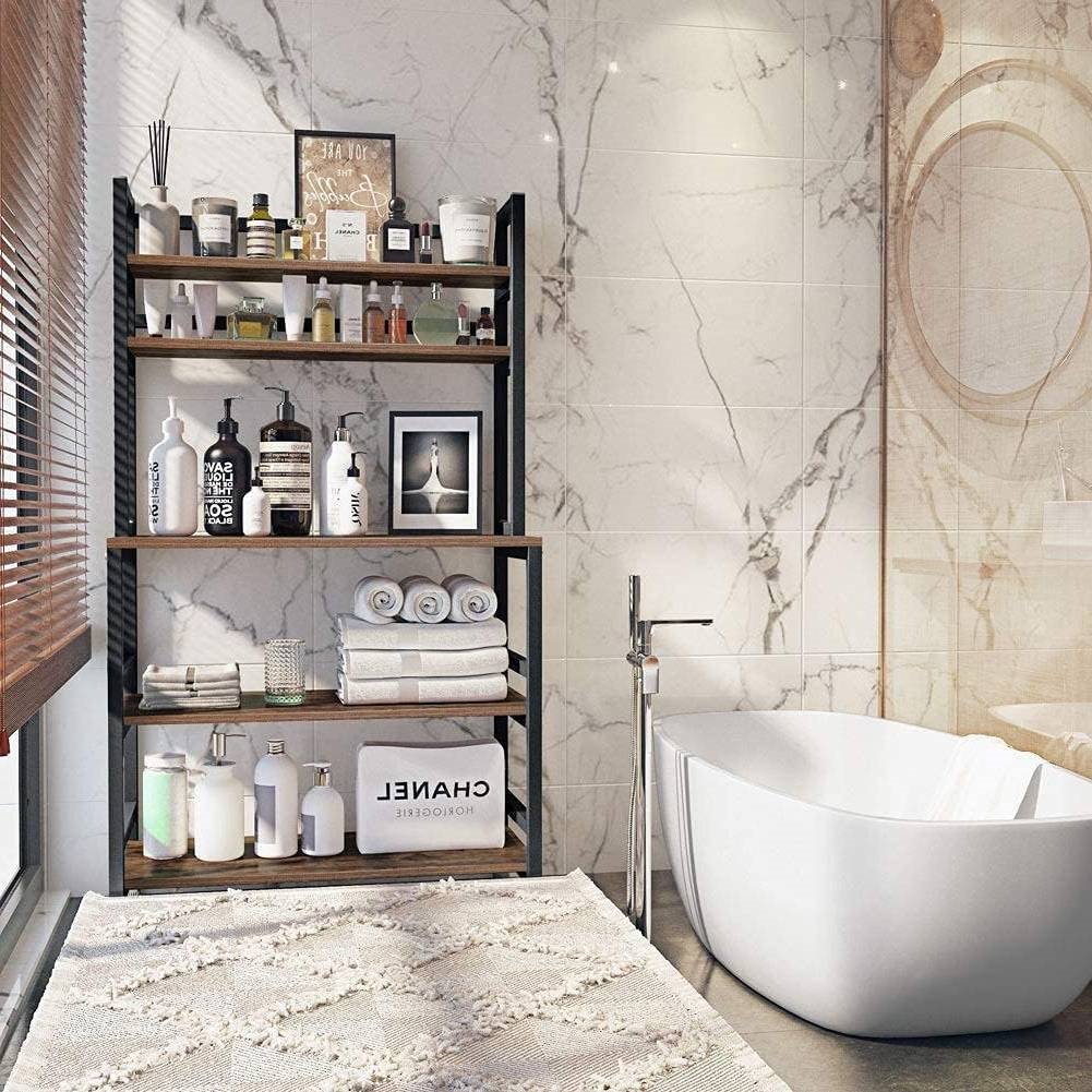 This Industrial Modern Kitchen Bakers Rack Brown Woodgrain Sturdy Metal Frame has high on utility, not only a kitchen island, also as an elegant bookcase, microwave stand, spice rack organizer, bathroom cabinet, wine board for living room, and can harmonize with any other rustic furniture in any room. The vertical structures doesn’t take up space and add more storage space for bedroom, kitchen, pantry or bathroom. Come with a total of 3 bottom shelves and 2 top shelves, this microwave rack is an excellent storage option for the eat-in kitchen. It is ideal for holding a microwave, oven, and some of your other kitchenware or bits and pieces, as well as storing spice, plate dishes, and any other things you want. Your kitchen will become tidy! This kitchen stand features a 31.5”L x 15.7”D tabletop to provide a sturdy working surface, which is durable and easy to clean. Two slatted upper shelves are ideal for displaying your favorite cookbooks, jars of spices, and canisters of dry goods. A strong iron frame and quality 0.59” thick chipboard enhance the strength, so you can put all you need on this baker rack. 6 reinforced iron rods of each tier prevent items from slipping and increase the loading capacity. Floor levelers not only can be used in uneven ground to prevent scratches, but also make adjustment of height to meet your various demands.