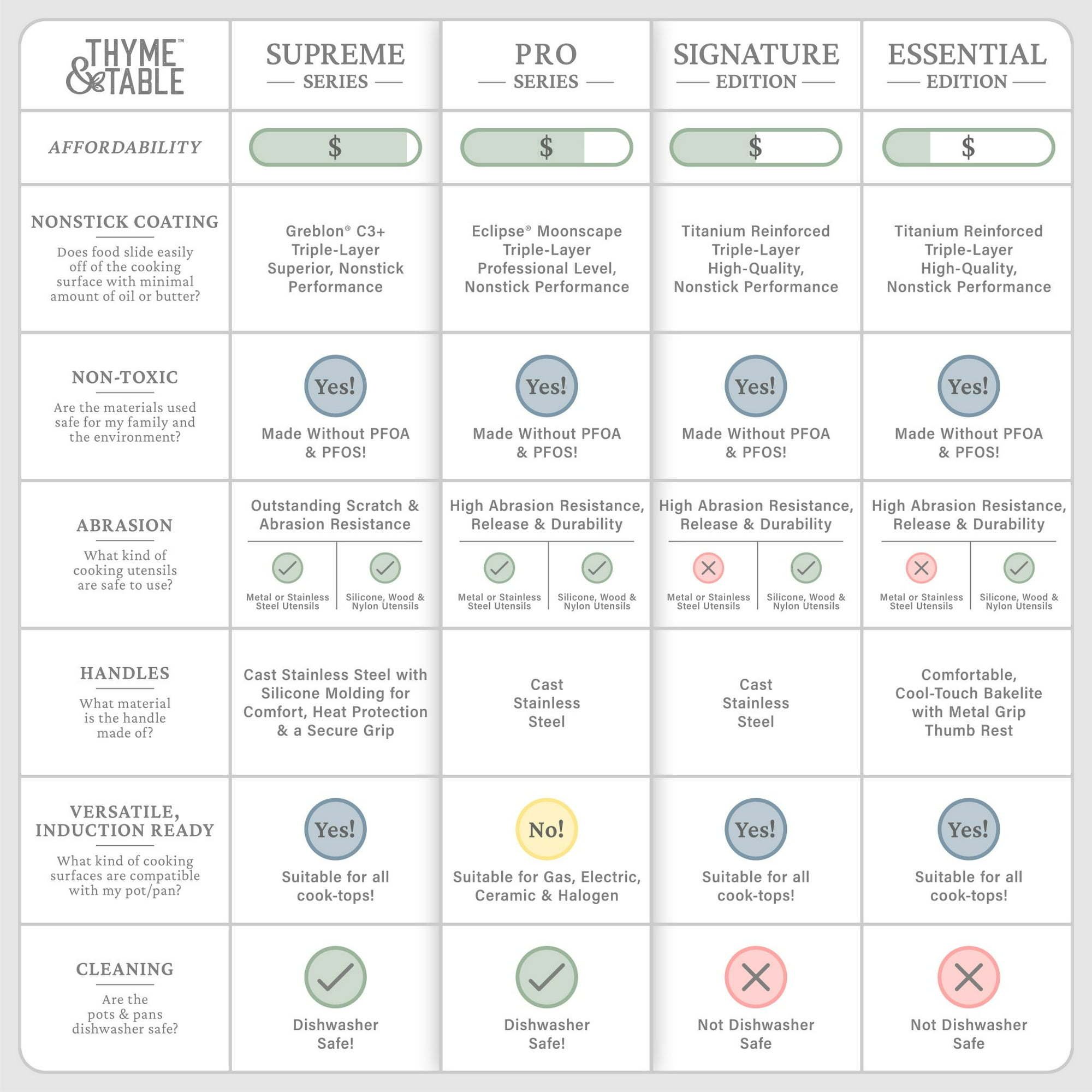 Thyme & Table Nonstick Hard Anodized 8" Fry Pan is apart of Thyme & Table's Hard Anodize Collection. The Eclipse triple-layer heavy-duty nonstick coating promises quick food release while the hard anodized material delivers rapid and even heating with no hot spots. A hallmark of the Hard Anodized Collection, this fry pan is oven safe up to 400ºF (204ºC), and is outfitted with an ergonomic stainless-steel riveted handle for maximum stability.